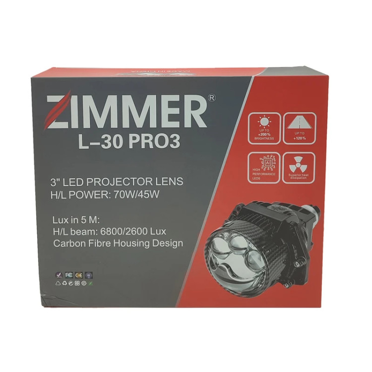 اگر به دنبال لنزی هوشمند، قوی و سازگار با تمامی خودروها هستید، لنز L30 PRO3 زیمر انتخابی بینظیر برای ارتقای سیستم روشنایی خودروی شماست. این لنز با سایز استاندارد 3 اینچ و طراحی دقیق، قابلیت نور پایین 45 وات و نور بالا 70 وات را با پخش یکنواخت و قوی ارائه میدهد.
