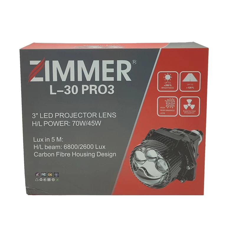 اگر به دنبال لنزی هوشمند، قوی و سازگار با تمامی خودروها هستید، لنز L30 PRO3 زیمر انتخابی بینظیر برای ارتقای سیستم روشنایی خودروی شماست. این لنز با سایز استاندارد 3 اینچ و طراحی دقیق، قابلیت نور پایین 45 وات و نور بالا 70 وات را با پخش یکنواخت و قوی ارائه میدهد.